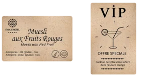 Edikio 的新型 PLA/BOIS 卡为您的个性化标签和卡片提供了 PVC 以外的新选择!它们减少了对环境的影响,具有迷人的天然木质外观,适用于多种用途,并通过 Edikio Guest 和 Edikio Price Tag 软件提供大量个性化选项。它们还经过了 Edikio 研发和质量部门的测试和验证,以确保专业、高质量的成品。