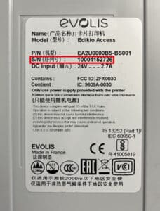 *来自序列号 10001152726。要查找序列号,请查看 Access 的底部!那里有一个标签和与打印机序列号相对应的 S/N 指示: