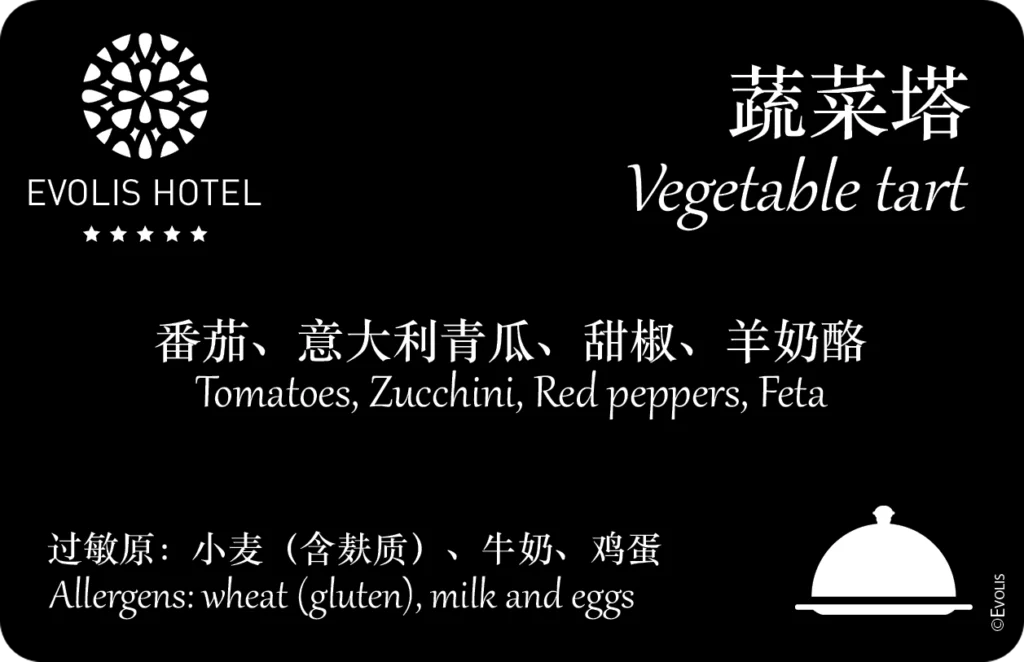 使用Edikio Guest,您可以统一自助餐标签及展示卡,提升酒店品牌形象。我们的标签支持全面个性化设置:从菜品名称、翻译、过敏原信息,到卡片材质、颜色、尺寸均可自由选择。每件产品都有专属标签,成为传递重要信息的专业工具,助力打造完美形象。