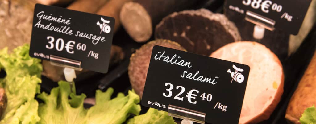 在价格牌上使用配件也是彰显卓越品质的绝佳方式。.例如,对于肉类等生鲜产品,特别推荐使用标签夹,因为它不仅能与产品相得益彰,赋予产品独特的个性,还能使价格牌的处理更加卫生。