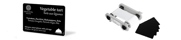 - 再生 PETG 卡 它们在黑色哑光背景上印有白色单色印刷,看起来与 PVC 卡片一样漂亮,而且同样专业和优质。它们易于清洁,而且足够结实,可以经受频繁的操作。此外,它们还是专为食品行业设计的。