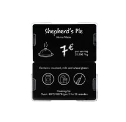 - 使用标准的 CR80 格式卡片,清晰显示消费者需要的所有信息:成分、价格、过敏原、生产方法、原产地、营养信息、双语交流。