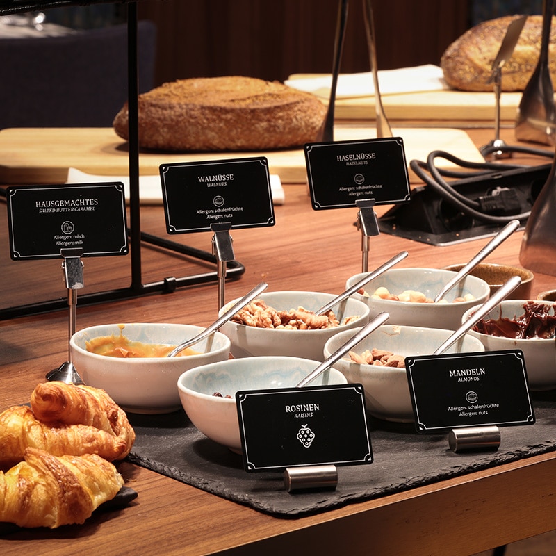 - 使用标准的 CR80 格式卡片,清晰显示消费者需要的所有信息:成分、价格、过敏原、生产方法、原产地、营养信息、双语交流。
