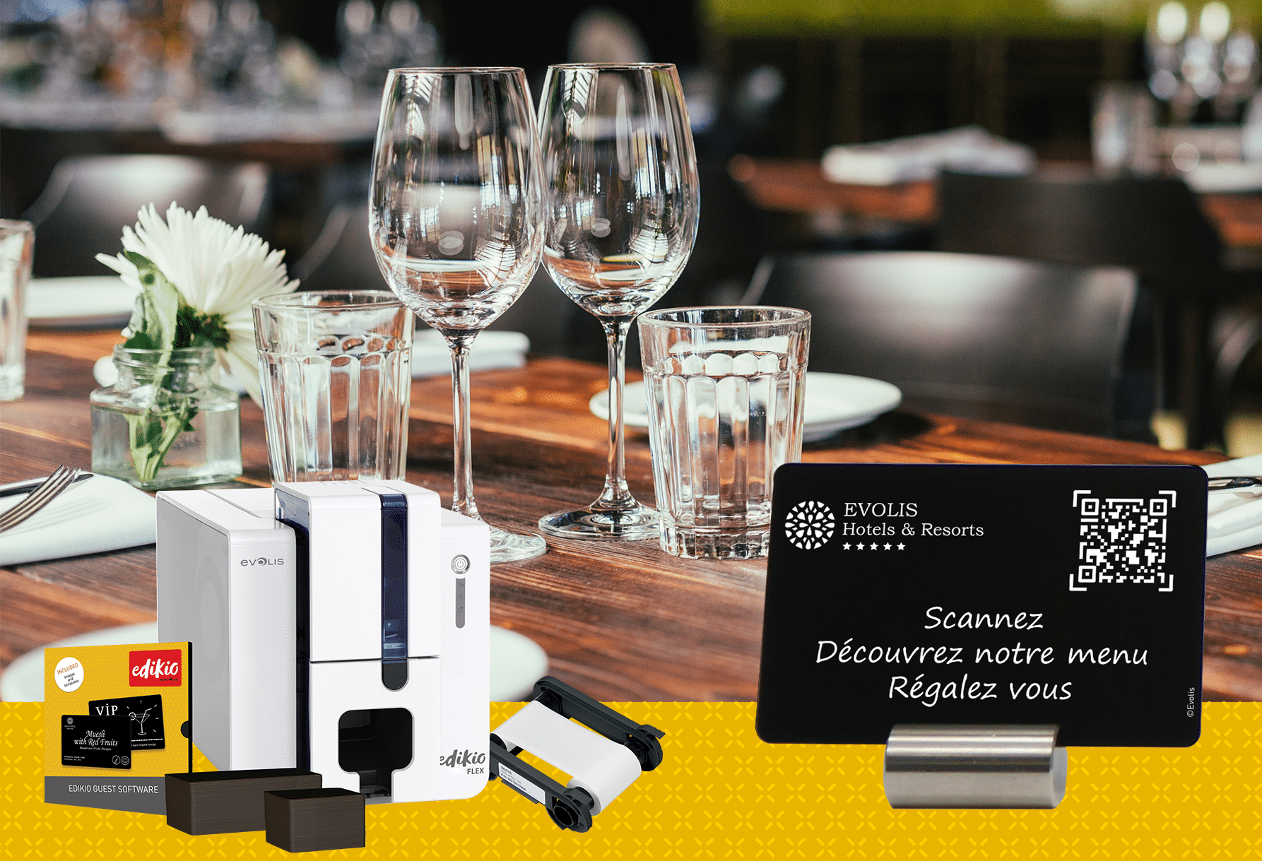 使用我们的 Edikio 客人打印解决方案,您可以自己创建和打印餐厅二维码卡!打印机 Edikio 访客访问 和 Edikio Guest Flex 高质量的打印还保证了智能手机读码的准确性。