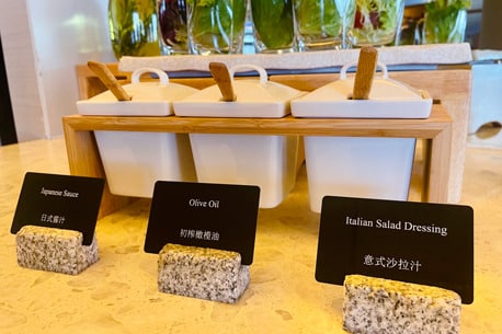 Portman Ritz-Carlton(浦东丽思卡尔顿酒店) 使用定制标签展示其 Portman 餐厅 和 行政酒廊(Executive Lounge) 的自助餐菜品。标签上印有专门设计和打印的卡片,用于标示餐点价格,以及 Ritz Bar & Lounge、茶室和纪念品商店出售的商品价格。