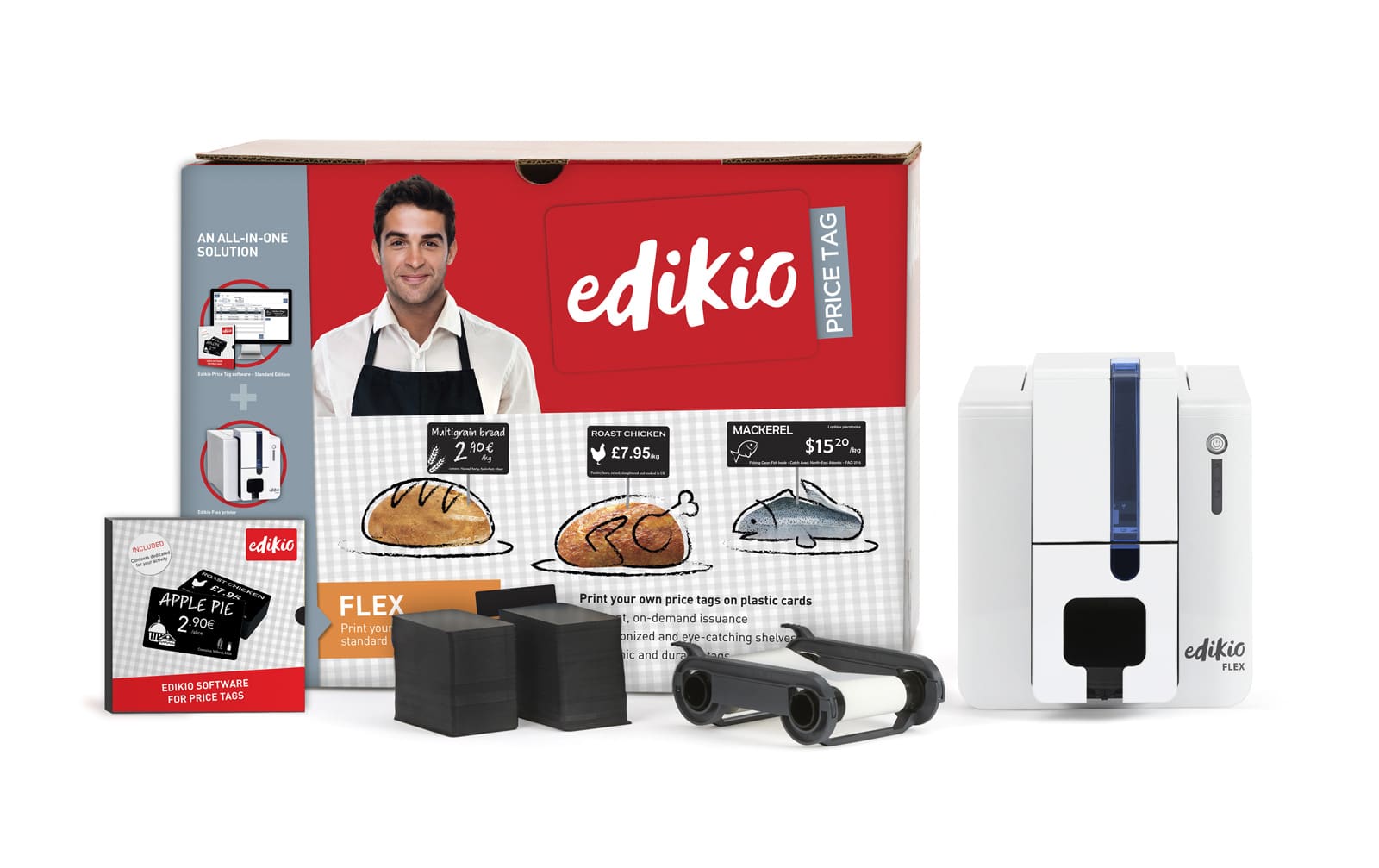• 价格标签打印机 Edikio Access:在不同尺寸的卡片上进行专业的单面或双面打印(Edikio Access、Flex 和 Duplex 为信用卡格式,Edikio Flex 为长格式)。